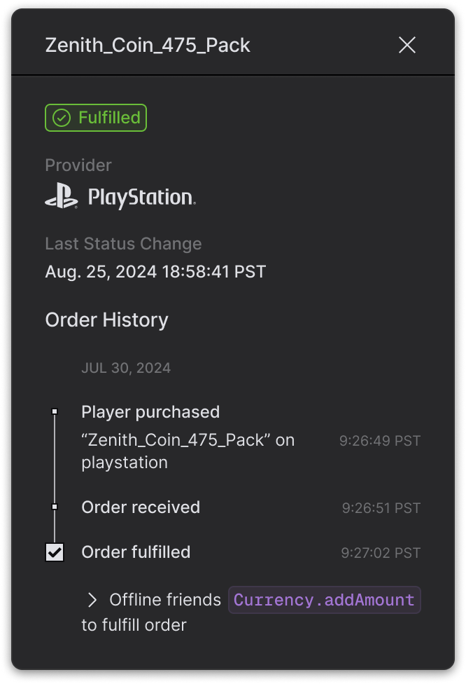 Build in-game stores with our Orders service. We take care of all the platform inconsistencies, rules, and certification requirements. Works across Steam, PlayStation, Epic, Xbox, and Twitch.